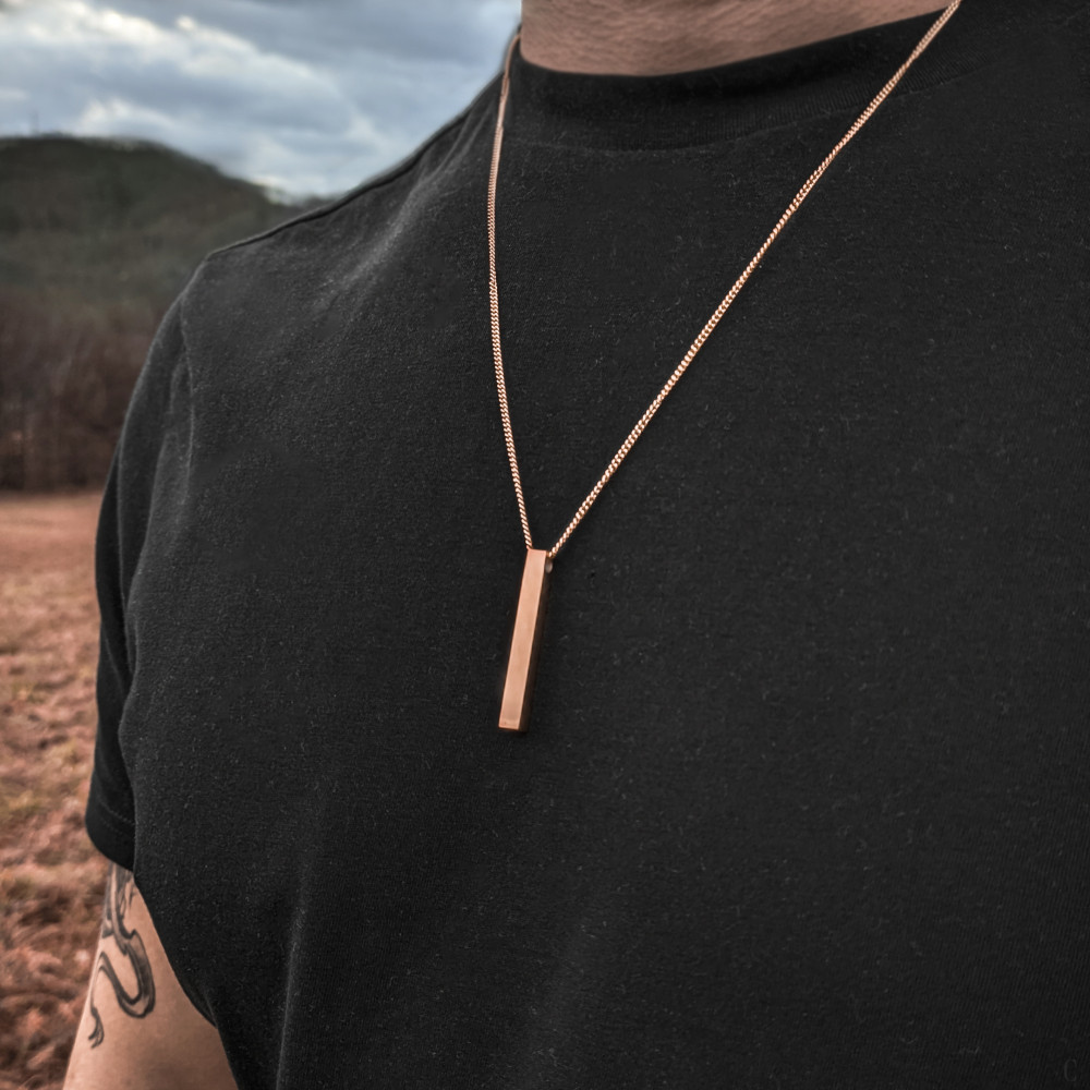 Tento náhrdelník z růžového zlata byl vyroben z nejkvalitnější nerezové oceli a díky minimalistickému přívěsku a kubánskému řetízku vznikl výrobek, který se hodí k jakémukoli oblečení nebo příležitosti.