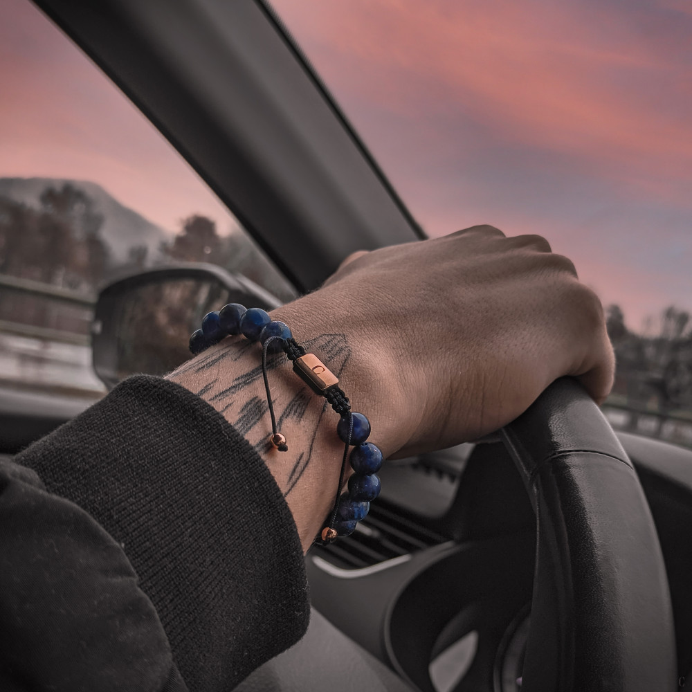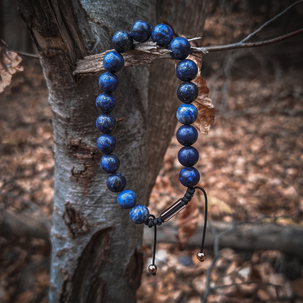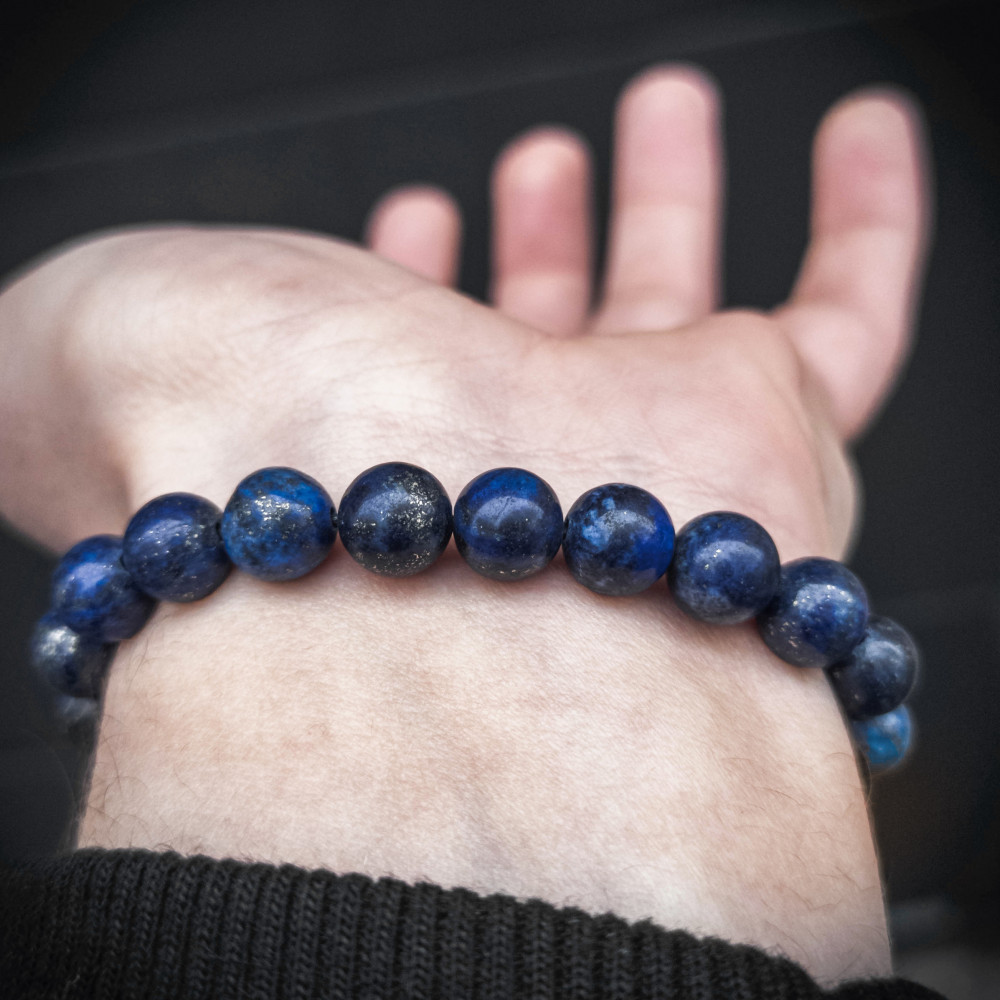 Tento pánský náramek je vyroben z lapisu lazuli, což je ceněný a vzácný minerál s charakteristickým modrým odstínem, připomínající hvězdné nebe.
