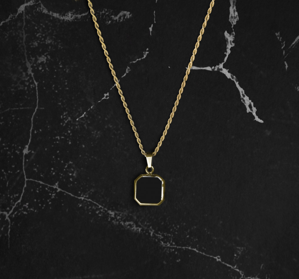 Tento náhrdelník v kombinaci s čtvercovým přívěskem je dokonalým doplňkem zlaté a černé barvy. Tento náhrdelník je navržen tak, aby zaujal, a je nezbytným doplňkem pro každého, kdo chce vyčnívat z davu.